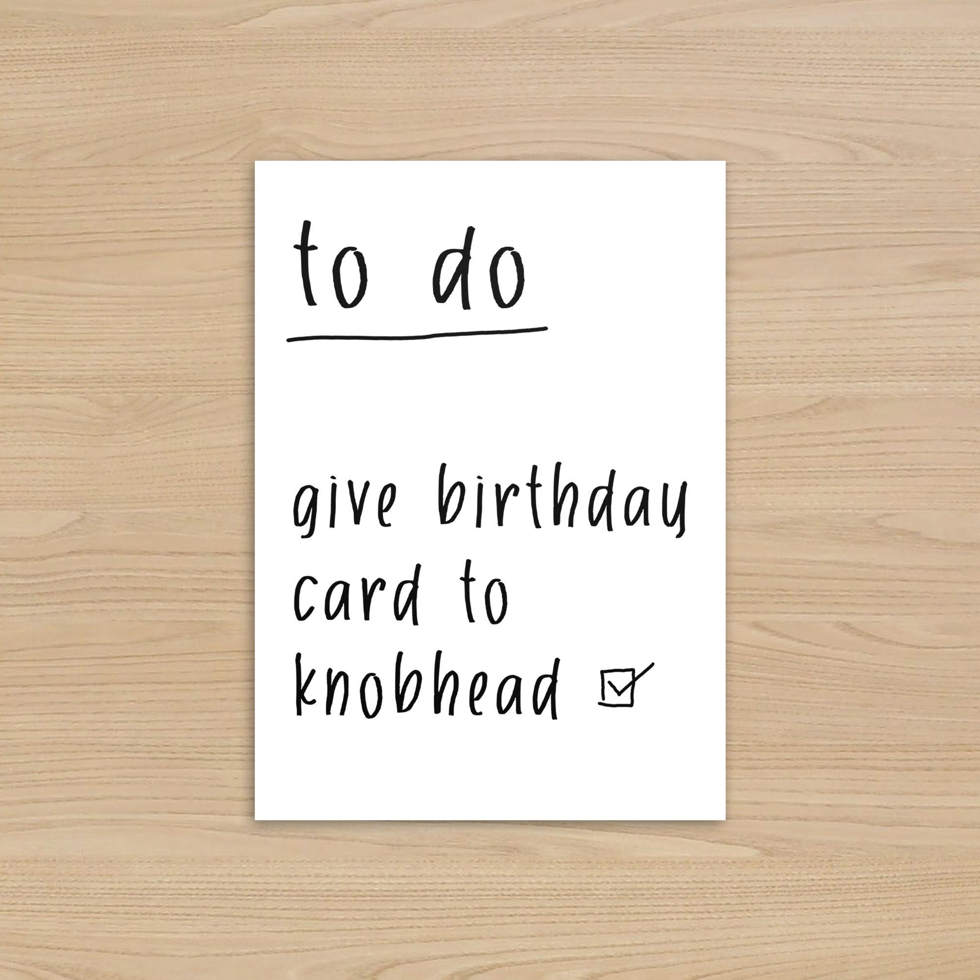 To Do List Birthday Card: Give Card to Knobhead Funny Rude Card