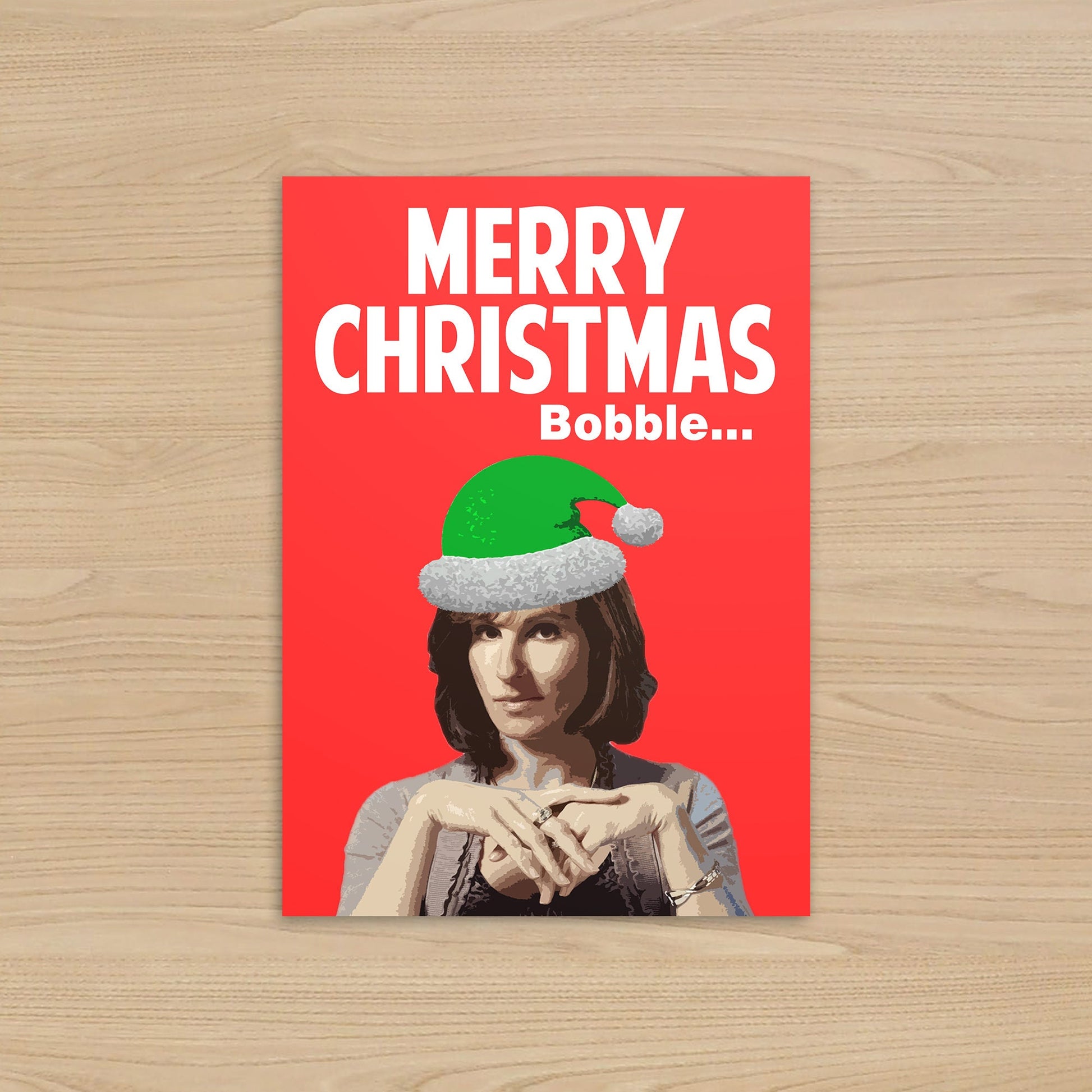 Celebrate the festive season with a touch of Jewish motherly love. This high quality Christmas card features the iconic Jackie Goodman from the hit comedy Friday Night Dinner, complete with her signature "Merry Christmas Bobble" catchphrase. Perfect for fans of the show who appreciate a bit of festive "shmoogle."