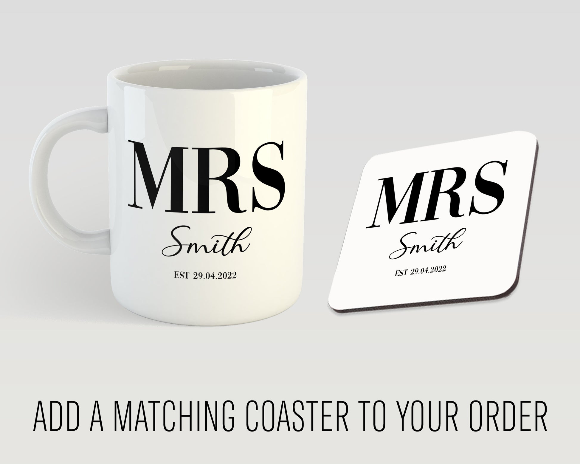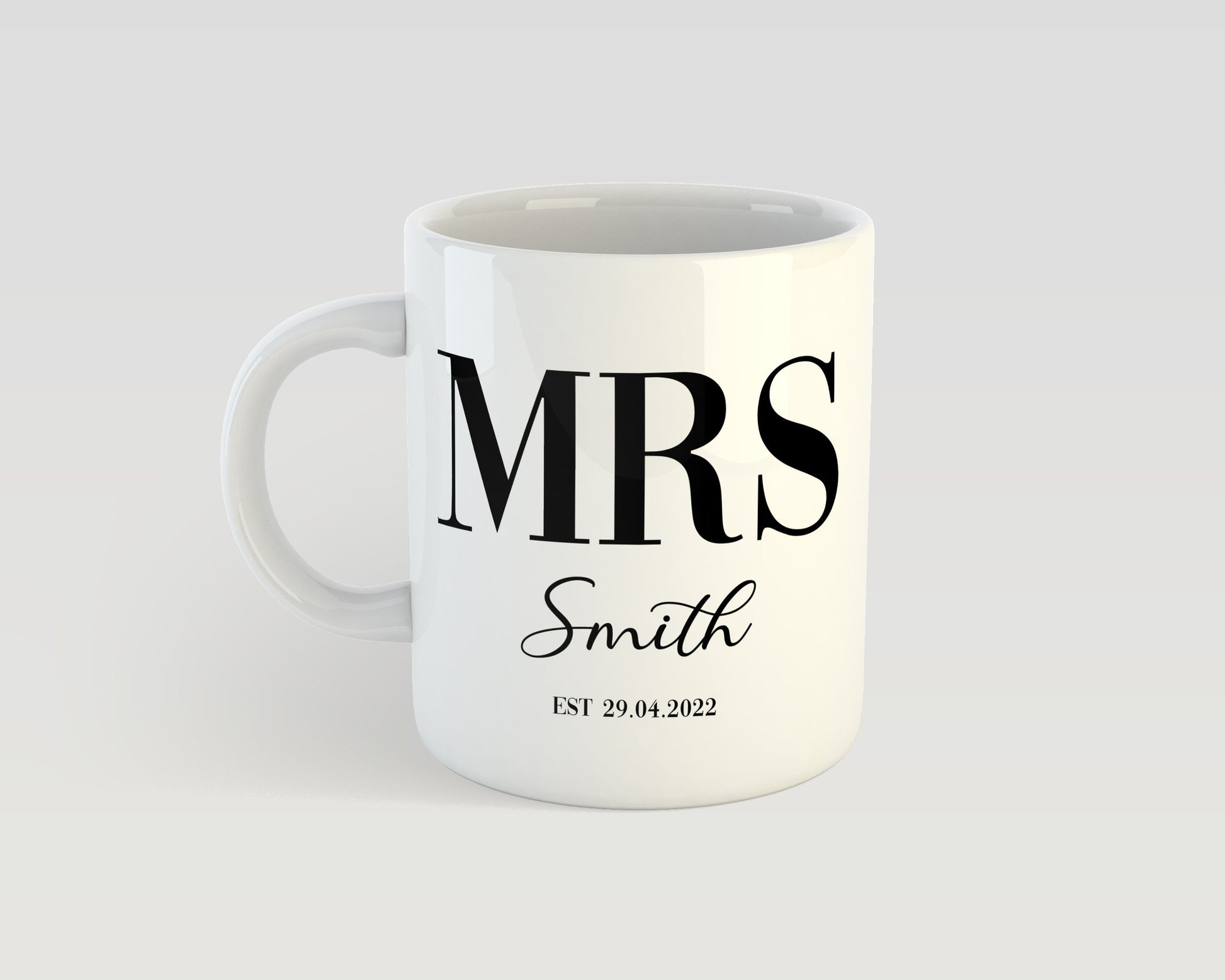 Personalised Mr and Mrs Mug Set with Custom Wedding Date – Couple Gift